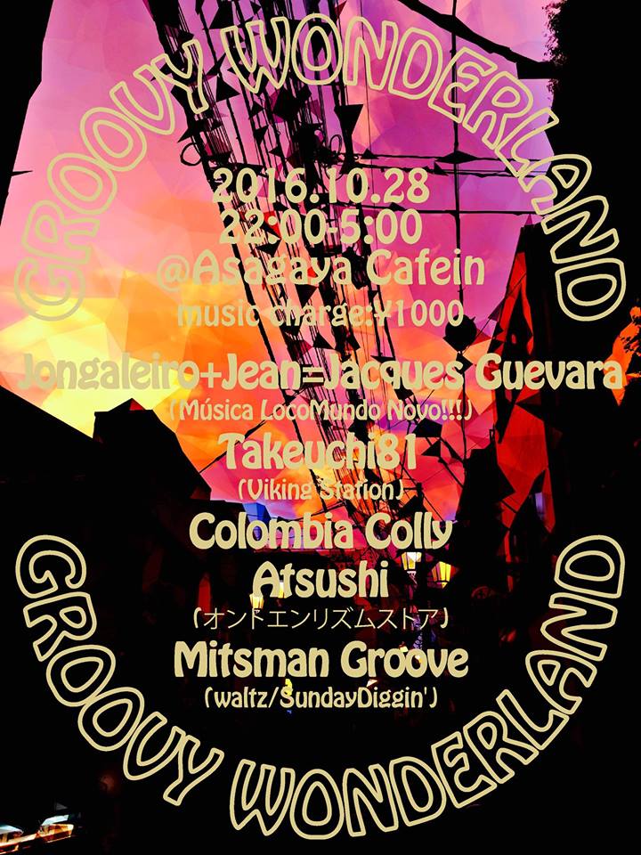 DJs Jongaleiro+Jean=Jacques Guevara (Música LocoMundo Novo!!!) Takeuchi81 (Viking Station) Colombia Colly Atsushi (オントエンリズムストア) Mitsman Groove (walts/Sunday Diggin’)